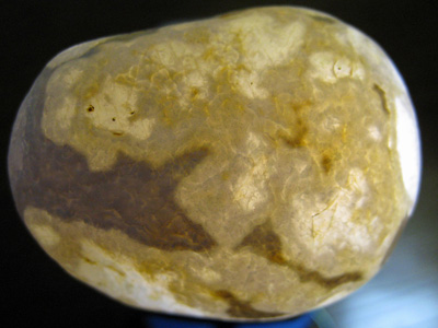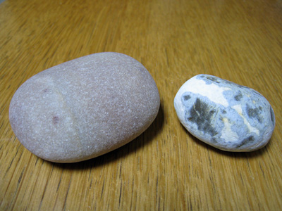 海辺で石拾いを少ししました。左が正硅岩で右が瑪瑙です。下の写真は瑪瑙の下から自転車のLEDライトの光を当てて撮ったものです。なかなか不思議な色合いになりました。