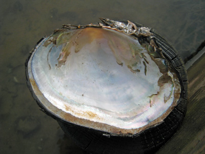 前回見かけた場所で殻を拾い上げてみました。内側は綺麗な真珠色でした。