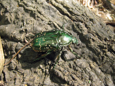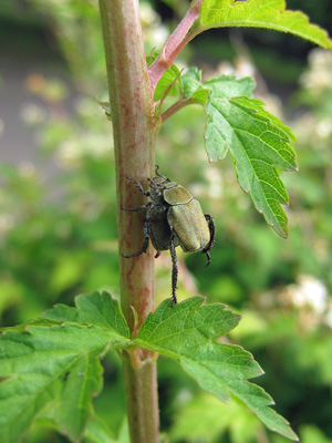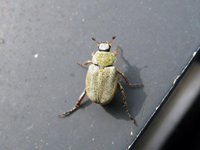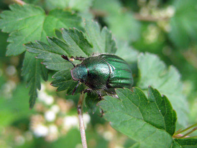 綺麗な緑色のコガネムシで、写真でアップで見るとよくわかるのですが毛深いです。ゴルフ場などで大発生する事もあるようです。