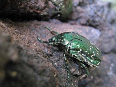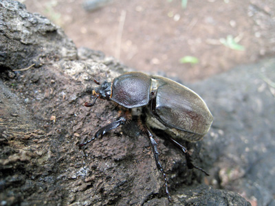 シロテンハナムグリとの違いが実によくわからないのですが、頭の形と身体の色で何となくそうかと思いました。なお、写真が少し右にずれていますが、暗い中で手ぶれしないように木にデジカメを押し付けて撮影したからです。ちなみにこれが一番個体数が多く、カナブンが数頭、クロカナブンが一頭いました。またルリタテハも2頭見かけました。