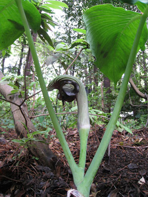 今回は近所を出歩いている時にちょっと覗いてみた林の下にムサシアブミが咲いているのを見つけました。あまり知られている所ではないと思いますので場所は伏せておきます。(2013/04/21 記)