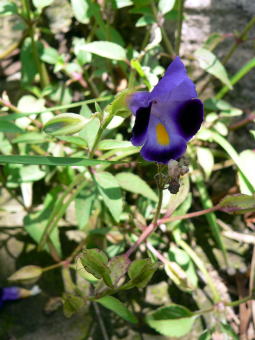 ![]() Torenia fournieri 良く栽培されているので園芸の逸出かと思いましたが自生しているようです。ポツポツと2か所くらい生えているのを見かけました。青が鮮やかな花です。 |