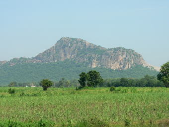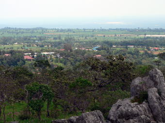 途中の風景 車窓からの写真です。こんな感じで色々な形の岩山が平原の中に現れました。昔の珊瑚礁が石灰岩になり、隆起して、年月をかけて硬い所が残ってこのような地形になったとの事です。 |