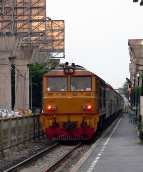 | 早朝にいったん観光バスに集合してからドンムアン駅(空港のある所)に行き、列車に乗り換えました。定刻通りに運行されているようですが、椅子が簡単に外れる古い車両でした。水田地帯を延々と走ります。かなりのスピードで行くので、途中で鳥が見えても双眼鏡で確認する事は出来ません。それでもサギに混じって見慣れない大きな鳥が居ました。コウノトリの仲間とのことで、アユタヤ近辺の水田地帯には多いとの事です。サギとは違って首を伸ばして飛んでいました。 しばらくすると色々な形の岩山が現れました。石灰岩の山との事で、大昔の珊瑚礁が化石となって隆起して出来た山だとのことです。石灰岩は硬度が高いので時間がたっても残りやすいので独特の景観を成すとの事だそうです。さらに進むと大きなダム湖が見えました。今年は少雨なので水は少なかったのですが、最近の雨のせいで持ち直しているようでした。高度を上げるにつれ、水田からとうもろこし畑が多くなりました。パノラマのように雄大な景色が拡がっていました。 バーンワータベーク駅で降りて再び観光バスに乗り、ヒンガーム国立公園を目指しました。そんなに人はいないかと思っていたのですが、観光名所のようで、立派なビジターセンターがあり、かなり賑やかでした。ここから「蚊バス」(とツアー会社の人は読んでいましたが、トラックの荷台を改造したバスです)に乗り換えて遊歩道の入口に着きました。そこは岩原で所々に水が流れているような所でした。葦毛湿原よりももう少し岩を多くしたような感じの所です。岩の合間にイワヒバ?や見慣れない花があり、写真を撮りながら進みました。ここから林の中を進みました。暫く進むと草原に出て、「花みょうがの咲く原」に着きました。盛りは過ぎていましたが、ピンクの花が至る所に咲いていました。そこから更に進み、林の中を抜けて高原の端の絶壁に着きました。下を見下ろすと緑のジャングルが延々と続いていました。ここから遊歩道に戻って「蚊バス」に乗り換えてから大型バスに乗り換えて昼食に向かいました。昼食はもち米が出ていて、場所柄か東北タイの影響のある料理でした。昼食からは一路バンコクに向かい、無事、帰途につきました。 |