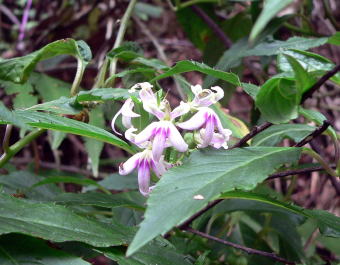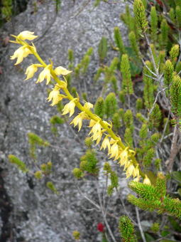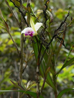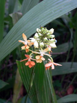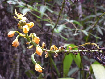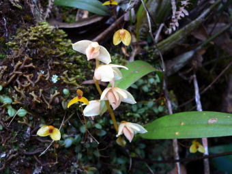 | キナバル山には蘭の仲間は非常に多く、ここに挙げた以外の蘭の写真を撮りましたし、花期が過ぎている個体も多かったです。同じ単子葉植物のユリ科やアヤメ科の花はまったく見られませんでした。むしろ、草本の花は大半が蘭だったと思います。 ちなみに、全てのコースに現地のガイドが付きますし、一人で脇道に入ると道に迷ったりして命にかかわります。(麓の自然観察教室でGreen Snake(毒蛇)を捕まえて見せていました。)変な気を起こさないように。。。 |