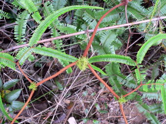 | シダやコケの仲間も豊富でした。その中でも左のシダは節々にコケ?を着けているように見えました。右のコケは傘のような形が面白く、写真に撮りました。 | ||