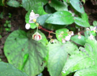 ベコニアの仲間? 樹林の下に生えていました。遊歩道の脇とか、岩の間とか、少し段差がある所を好んでいるようでした。 |