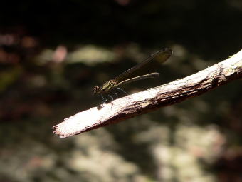 ![]() Aristocypha fenestrella(の雌) と思います。(たぶん)(雄は羽根に紺色の模様があります。)羽根の方が胴体より長いのが特徴です。 |