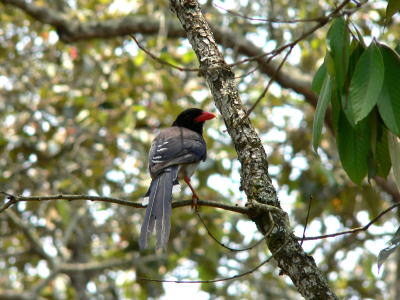 Red-billed Blue Magpie(サンジャク) オナガを二回り大きくして模様をつけたような印象の鳥です。国立公園の周辺を縄張り?としていて数羽の群れで飛び交っていました。 |