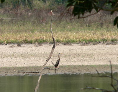Oriental Darter(アジアヘビウ) 海の近くにいる鳥と思っていましたがこのような内陸地帯で見かけるとは思いませんでした。カワウより1回り大きな胴体とはるかに長い首を持ち、く同一(と思われる)個体が複数ある湖の間をゆうゆうと飛びかっていました。 |