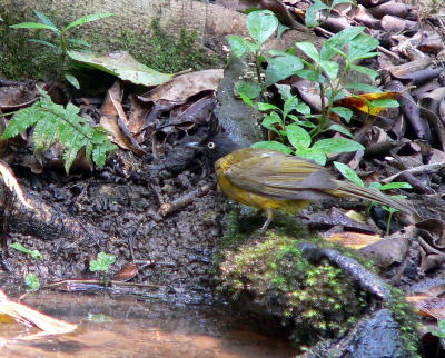 Black-crested Bulbul(エボシヒヨドリ) 山地に行くとよく見かける鳥です。何度もやってきては水を飲んだり浴びたりを繰り返しては立ち去りました。 |