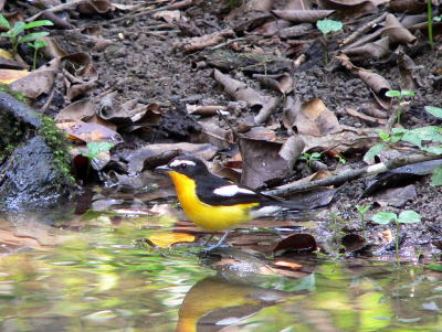 Yellow-rumped Flycatcher (マミジロキビタキ) いきなり水場にやってきました。日本のキビタキとは微妙に違う腹部の色合いや眉の色に感動(やってくるとは全く思えなかったので)しました。 |