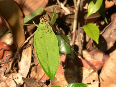 トンボの仲間 これはキノコの写真を撮った林道で見かけたトンボです。種類はよくわかりません。 |