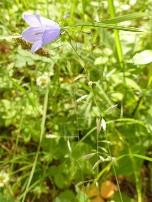 | Campanula rotundifolia イトシャジン 今回はかなりの数を見ましたが、花の重みで倒れている株が多かったです。 |