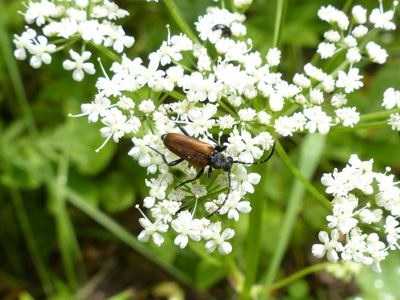 このハナカミキリは昨年は沢山見ましたが、今年は少ししか見ていません。 | |