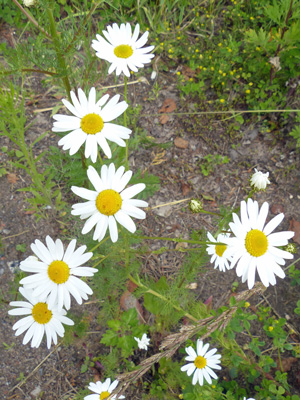 | Matricaria inodora 会社の人に教えてもらいましたが、7月8日は家族と愛と貞節の日とされていて、その日の花はカモミールだとのことだそうです。道ばたによく生えています。ロシアの図鑑にはこの種類が載っていましたが、花に香りがなくハーブにはならないようですが、そこまで試しませんでした。咲いているのを見たらば花の香りを試してみようと思います。 |
