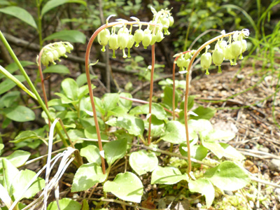 | Orthilia secunda コイチヤクソウ 先週、蕾を見つけていたのですが、そことは全く別の場所で沢山咲いているのを見つけることが出来ました。蜜があるのか、結構、虫が結構来ていました。 |