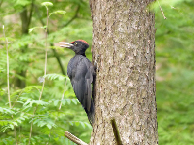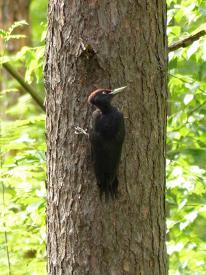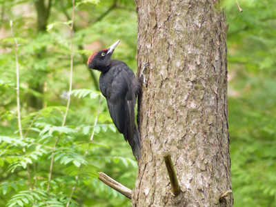 クマゲラ 2羽が鳴き交わしながら出てきました。その2羽が雄雌だったかどうかまではわかりませんでした。割とゆったりした動きでした。首を伸ばしたり真後ろを見たりなど、動きが面白かったです。 |
