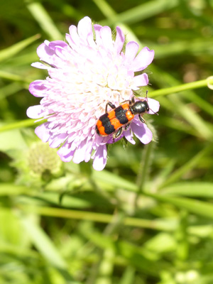 | このオレンジ色と黒の模様の昆虫は何の仲間なのかよくわかりません | ヒメアカハナカミキリに似ています。 | |