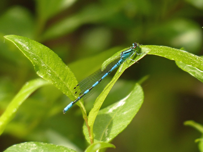 このイトトンボは池のある公園でよく見たことがある種類です。森の中の池の周辺にも居ました。 | |