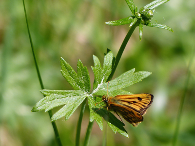 | (5/27の記録) この日は草地に行きました。まだ花はあまり咲いていませんでしたが、フウロの仲間などは咲き始めていました。今回の目的はクロホシウスバシロチョウでした。既に2−3頭飛んでいましたが、写真を撮るのは苦労しました。 |