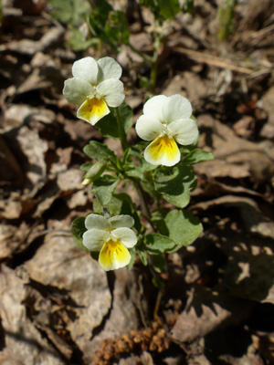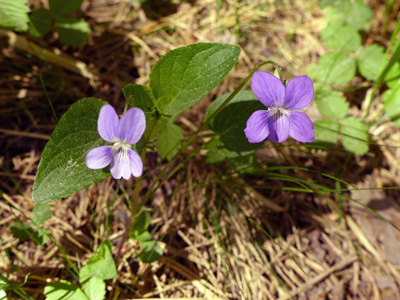 こちらのスミレは明るい乾いた所に生えます。この株は小さいですが、もっと背の高いものもありました。 | |