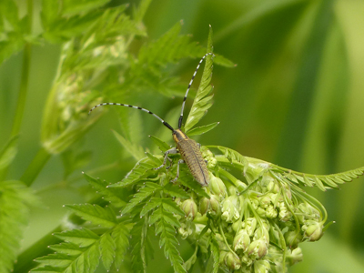 こちらのカミキリムシは見たことが無いです。触角が立派でした。 | |