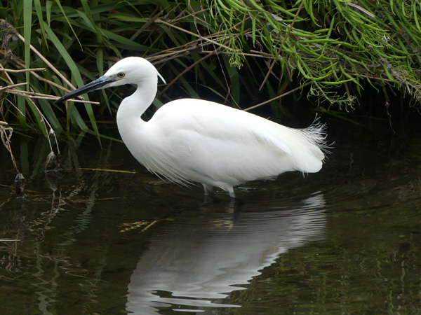 コサギ すぐ近くにコサギが居ました。ずっと小さく、脚の色も違います。 (2020/04/17撮影) |