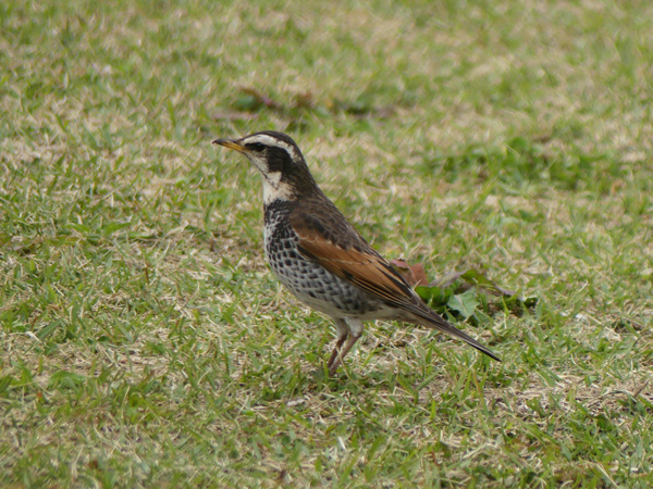 ツグミ 公園の芝生におりて餌を探していました。 (2020/04/17撮影) |