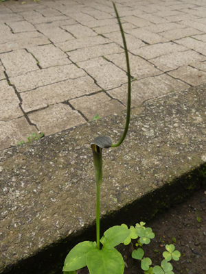 畑沿いの歩道に出ていました。普通の緑色のものもありましたが、これは褐色を帯びた花が咲いていました。