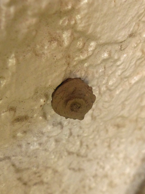 家の壁に小さな丸いものが付いていてよく見たらばトックリバチの巣と思われるものでした。ここだけでなくて別の場所で家族が巣作りしていたのを見たそうです。(2020/06/29 記)