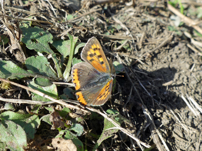 ベニシジミ 午前中ですが日差しが斜めに張るようになり蝶の影が地面に出ています。シジミチョウの仲間は翅が傷んでいましたがウラギンシジミ♂、ムラサキシジミ、ムラサキツバメなどを見ました。暑かったせいかムラサキシジミもムラサキツバメも翅をほとんど拡げてくれなかったです。 |