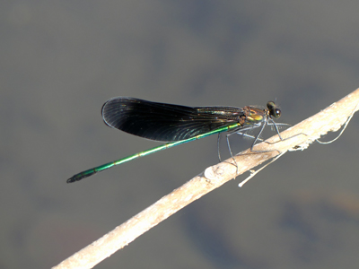 ハグロトンボ 最初1頭見かけましたが後からもう1頭やってきて飛んでいってしまいました。これ以外はアカトンボの仲間も居ましたがとまってくれませんでした。 |
