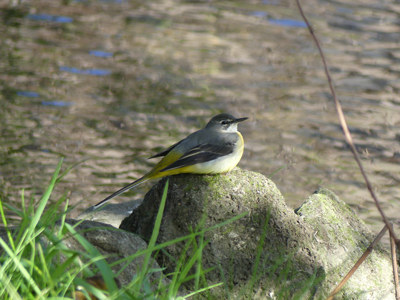 キセキレイ だいたい歩き回っては飛んでを繰り返していると思いますが、珍しく岩の上に座って休んで居るところを見つけました。 |