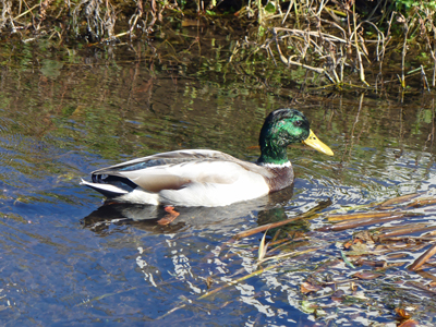 マガモ カモ類はカルガモ中心でマガモが♂2♀1でした。コガモなどはまだ来ていませんでした。ちなみに他の水鳥はコサギ ダイサギ アオサギ位でバンは居ませんでした。人が多かったので隠れていたのかもしれません。カワセミも2回ほど見かけましたが写真には撮れませんでした。 |