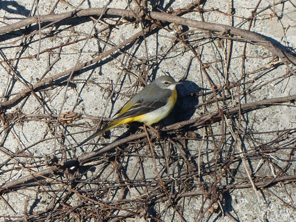 2/3に見ました。まだ時間が早いせいか川の護岸のコンプリートの蔦にとまってになたぼっこしていました。この近くではジョウビタキも見ましたし、近くの公園ではウグイスとエナガ、シジュウカラを見ました。
