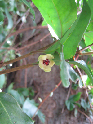 少し遅い時間に樹液エリアの近くを通ったらばコクワガタの雄が来ていました。最近はカナブンの仲間もほとんど見なくなり、今年の甲虫のシーズンも終わりだと思いました。翌日にその近くのビナンカズラを透かしてみたらば、一輪だけ花が綺麗に咲いていました。(2023/08/26,27 記)