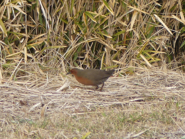 | ヒクイナ 帰る途中の道路沿いの田圃のふちの茂みから飛び出してきたのを見ました。すぐに茂みの中に戻ってしまいました。 |