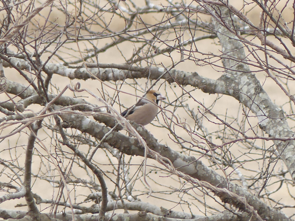 | ホオジロ こちらも沼のふちの木にとまっていました。シメよりは数が多かったです。カシラダカの群も見かけました。 |