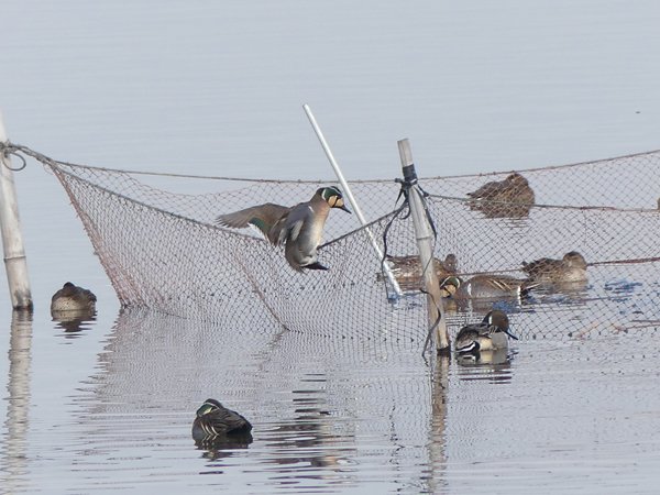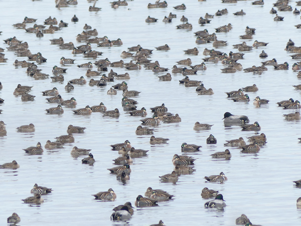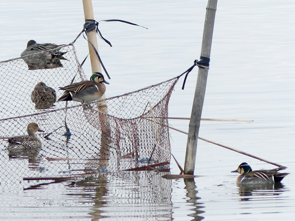 | トモエガモ ヨシガモ、マガモと一緒に居ました。これでも群の一部です。 |