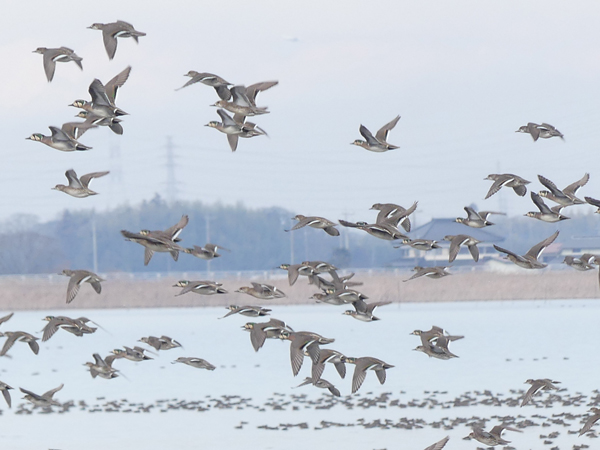 | チュウヒだと思いますが、猛禽が時折やってくると一斉に飛び立ちます。 | ||