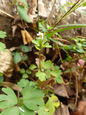 一ヶ所だけ咲いていました。とても小さな花ですが、オダマキに花の造りがよく似ています。