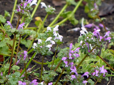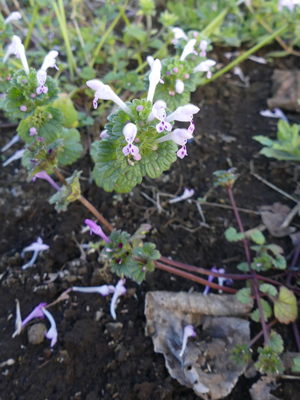 ![]() 白花と通常の紅色の花とが混じって咲いていました。白花といっても、下唇の赤い斑点は通常の紅色の花と変わらずについていました。 |