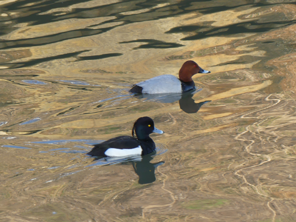 | キンクロハジロとホシハジロが並んで泳いでいました。帰りがけに鴨川で見ました。 | ||