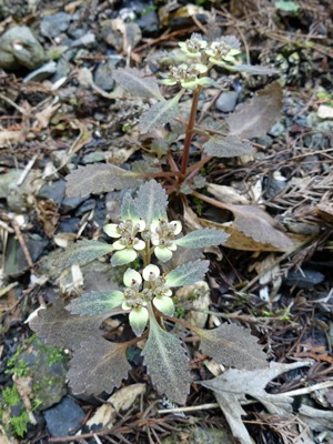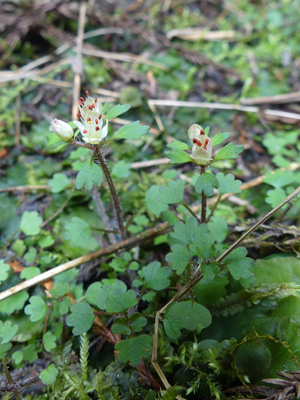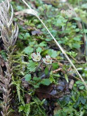 ![]() ヨゴレネコノメ 湿った暗い所で咲いていました。まだ咲きはじめでした。 |
