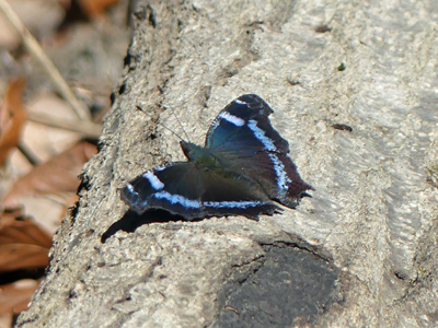![]() ルリタテハ 羽化したばかりと思われる綺麗な個体です。越冬のキタテハやヒオドシチョウも見かけました。 |