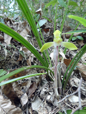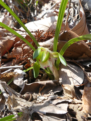 | シュンラン 今年はまだ蕾のものが多かったです。開きたての花を見つけて撮りました。 |