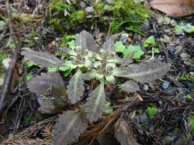 | 2つ並んでいて可愛いです。 | ツルネコノメ 一つだけ見つけました。もう咲いていました。 |