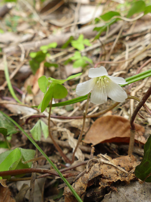 | ミヤマカタバミ 曇りがちのせいか閉じている花は多かったなか、開いている株を見つけました。 |