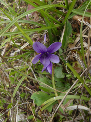 | ヒナスミレ こちらもまだ咲き始めで咲いている場所が限られており、探すのに苦労しました。この株は花色がかなり濃いです。 |